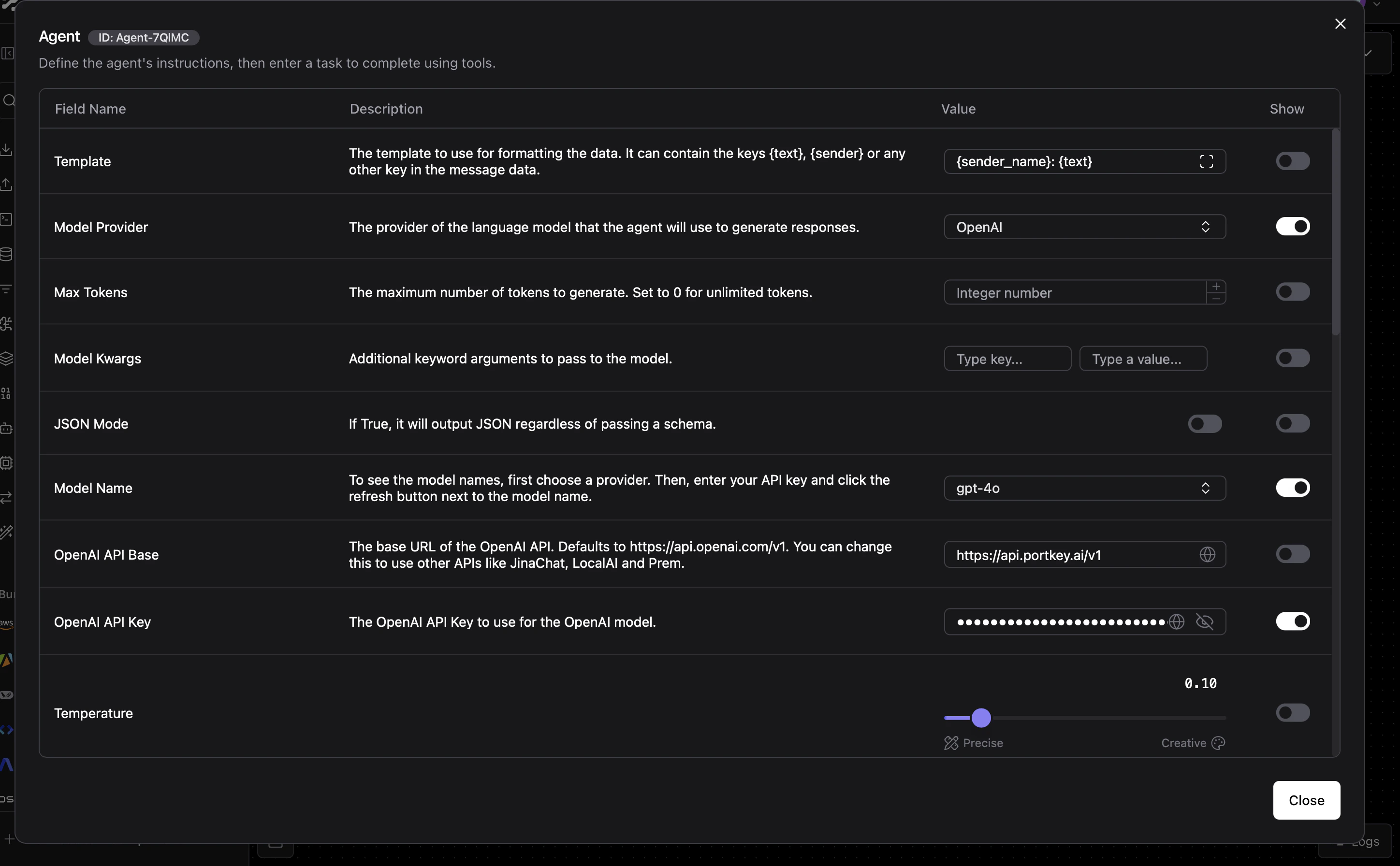 Select your provider (OpenAI, Anthropic, etc.), enter your API key, and create a slug like