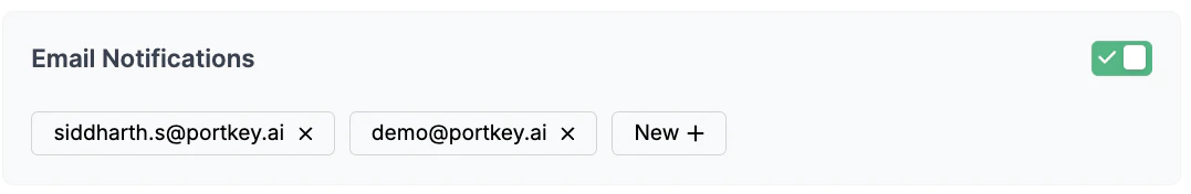 When limits are reached or thresholds are crossed, Portkey automatically sends notifications to: